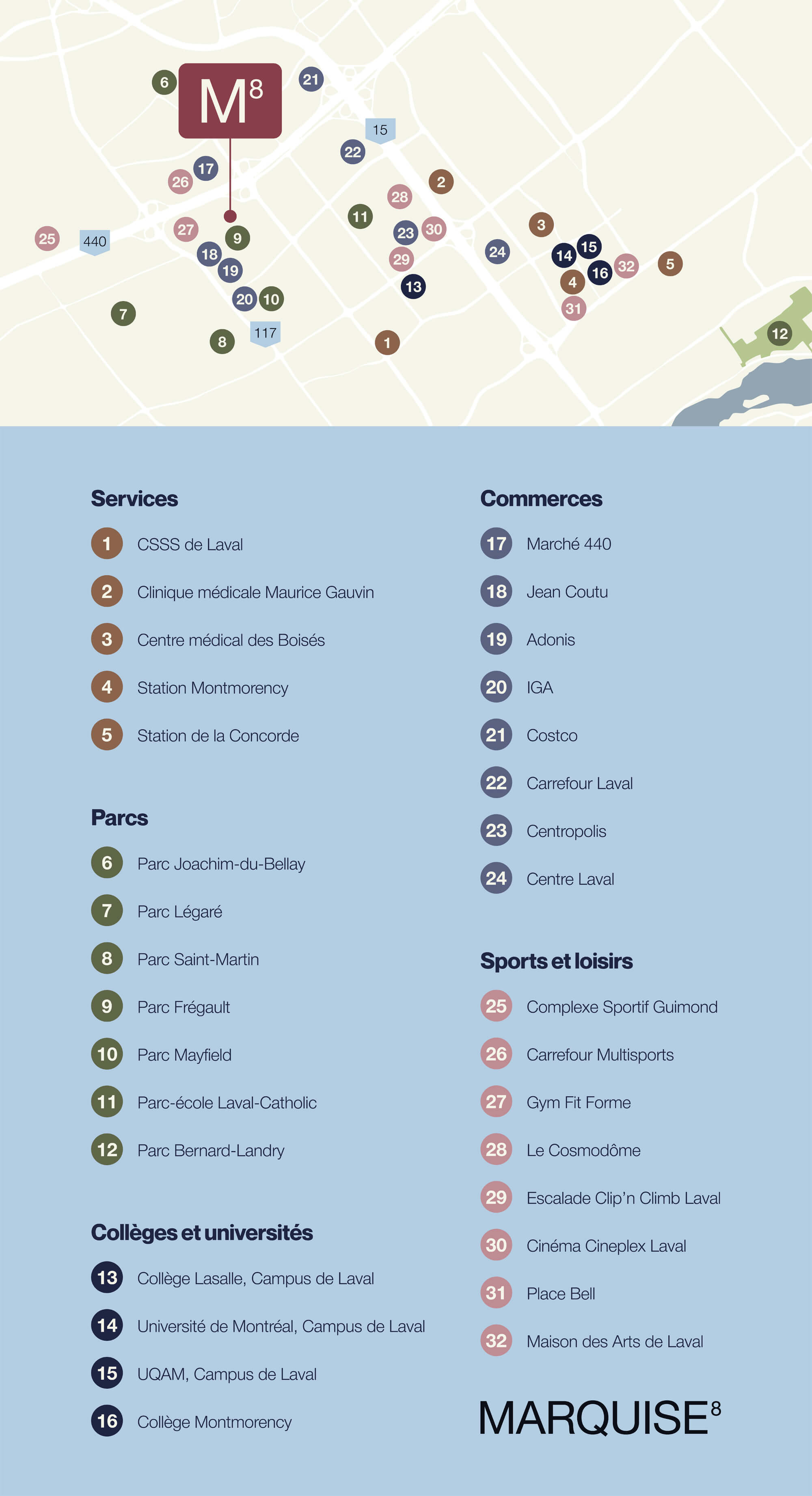 Choisir une vie de proximité, dynamique et riche en activités Marquise 8 devient votre point d’accès privilégié à tous les attraits du centre-ville : à seulement quelques pas, une foule de services, de commerces et de commodités s’offrent à vous en abondance.