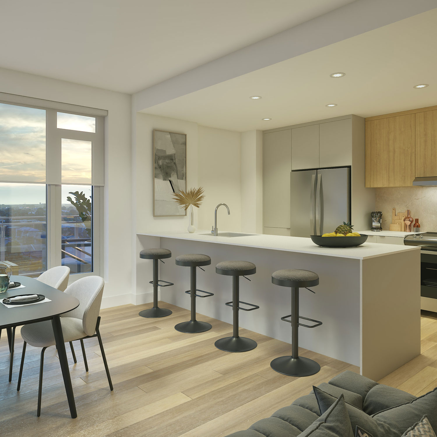 Les unités de 1 à 3 chambres du Marquise 8 offrent un design moderne pensé pour le confort, une grande fenestration et une qualité de finition supérieure, notamment dans les cuisines et les salles de bain avec les comptoirs en quartz.